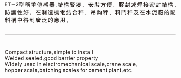 ET-2在制造机电结合秤、吊钩秤、料门秤及在水泥厂的配料秤中得到广泛的应用