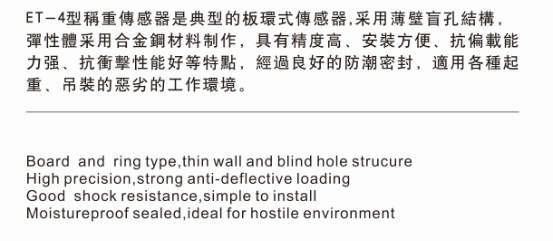 ET-4是典型的板环式传感器,适用各种起重、吊装的恶劣的工作环境