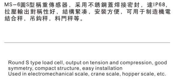 MS-6圆S型称重传感器,可用于制造机电结合秤、吊钩秤、料门秤等