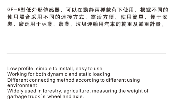 GF-9广泛用于林业、农业、垃圾运输用汽车的轮重及轴重计量