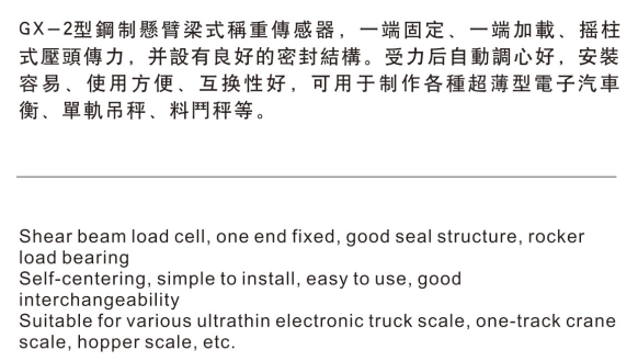 GX-2可用于制作各种超薄型电子汽车衡、单轨吊秤、料门秤等
