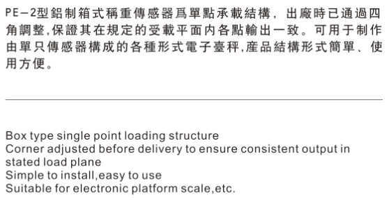 PE-2可用于制作由单只传感器构成的各种形式电子台秤,产品结构形式简单、使用方便