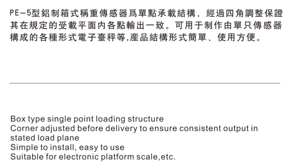 PE-5可用于制作由单只传感器构成的各种形式电子台秤,产品结构形式简单、使用方便