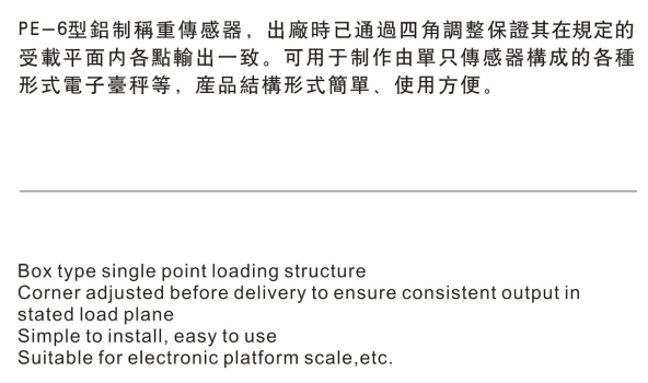 PE-6可用于制作由单只传感器构成的各种形式电子台秤,产品结构形式简单、使用方便