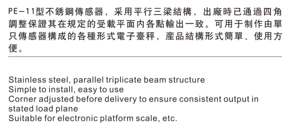 PE-11可用于制作由单只传感器构成的各种形式电子台秤,产品结构形式简单、使用方便